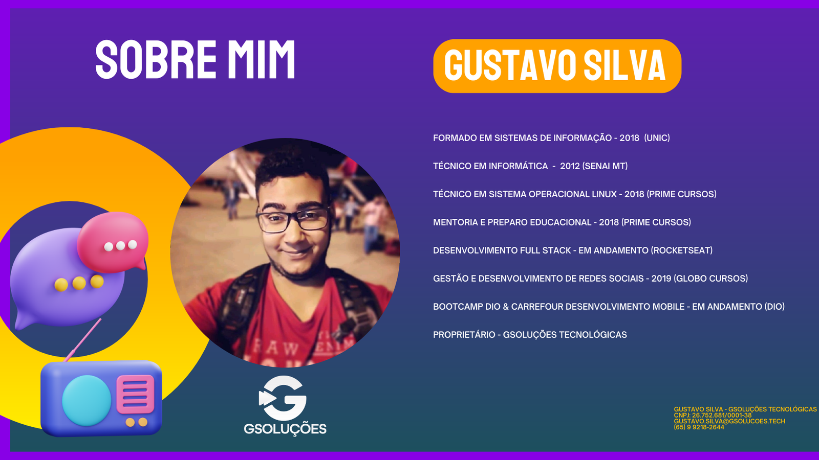 A GSoluções Tecnológicas é uma empresa, especializada em consultoria e serviços em tecnologia da informação, criado sobre a filosofia em prestar atendimento personalizado, objetivo e com qualidade aos seus clientes.